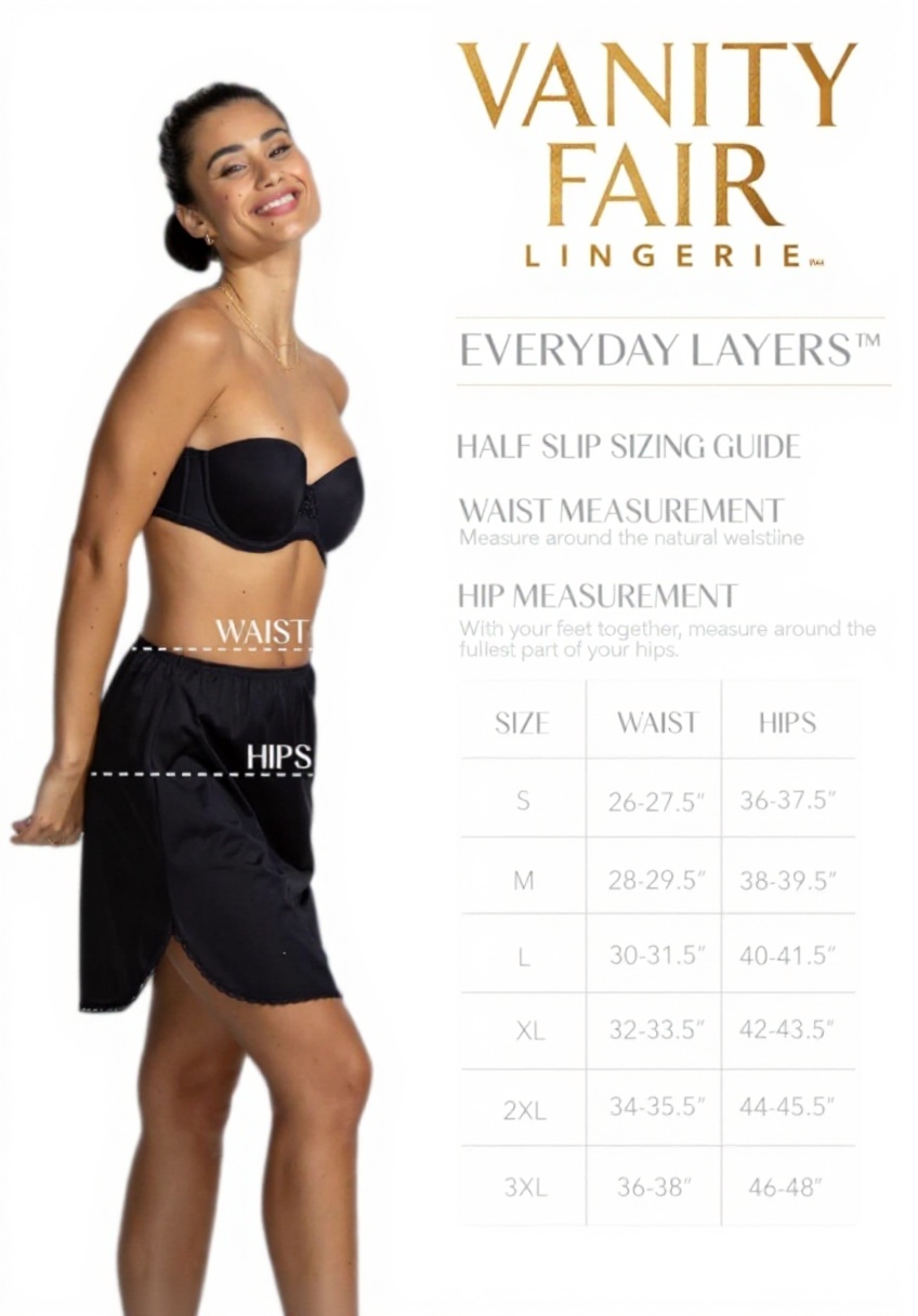 Le jupon Vanity Fair pour femme est conçu pour offrir un soutien discret et un confort durable. Fabriqué à partir de matériaux de qualité, il est disponible en plusieurs tailles, du S au XXL, et en deux coloris élégants : Blanc Étoilé et Minuit Noir. Ce sous-vêtement essentiel assure une finition lisse sous vos robes et jupes, avec une coupe ajustable qui épouse parfaitement votre silhouette. Idéal pour un usage quotidien, il allie praticité et style, répondant aux besoins des femmes modernes.